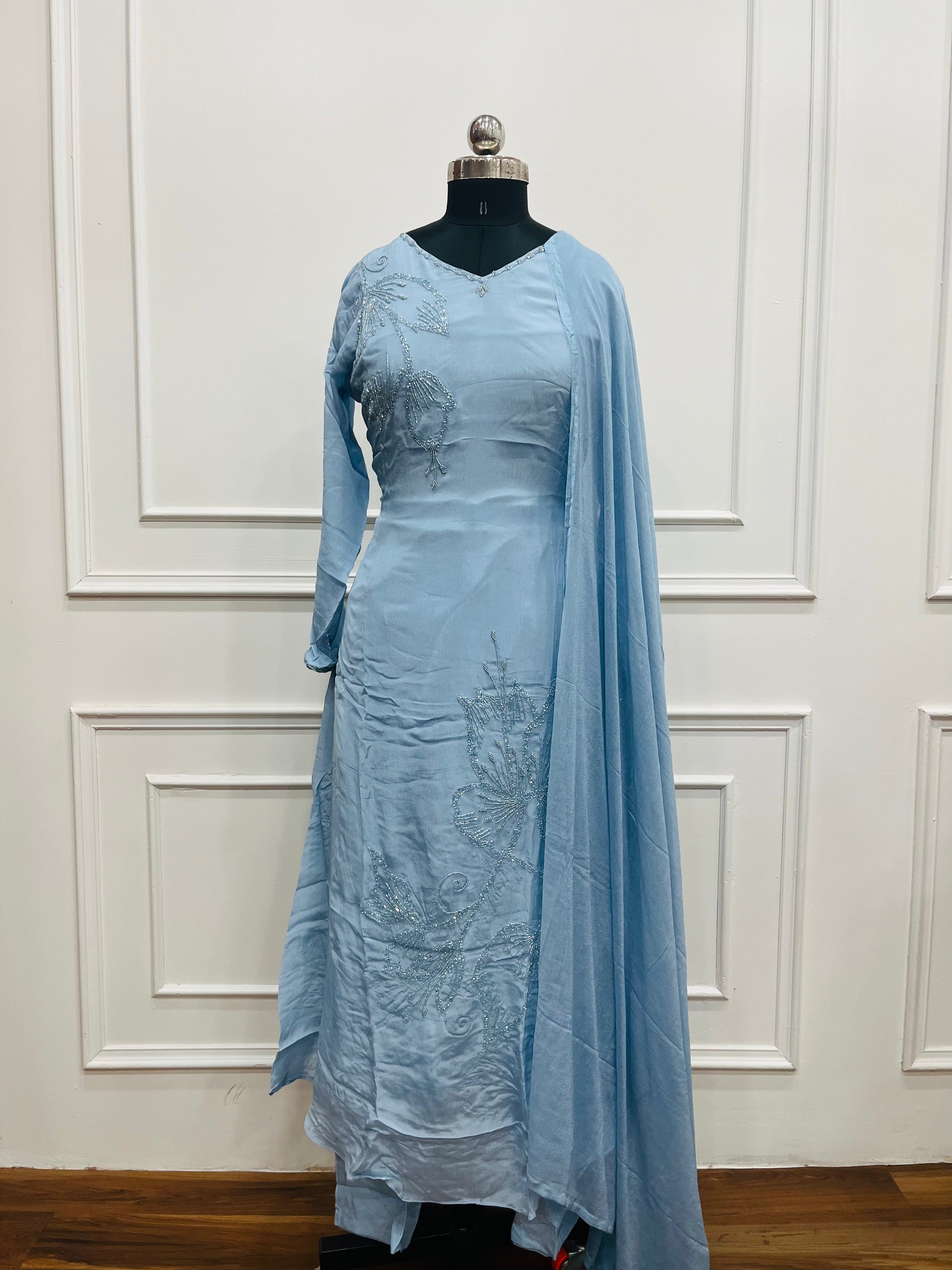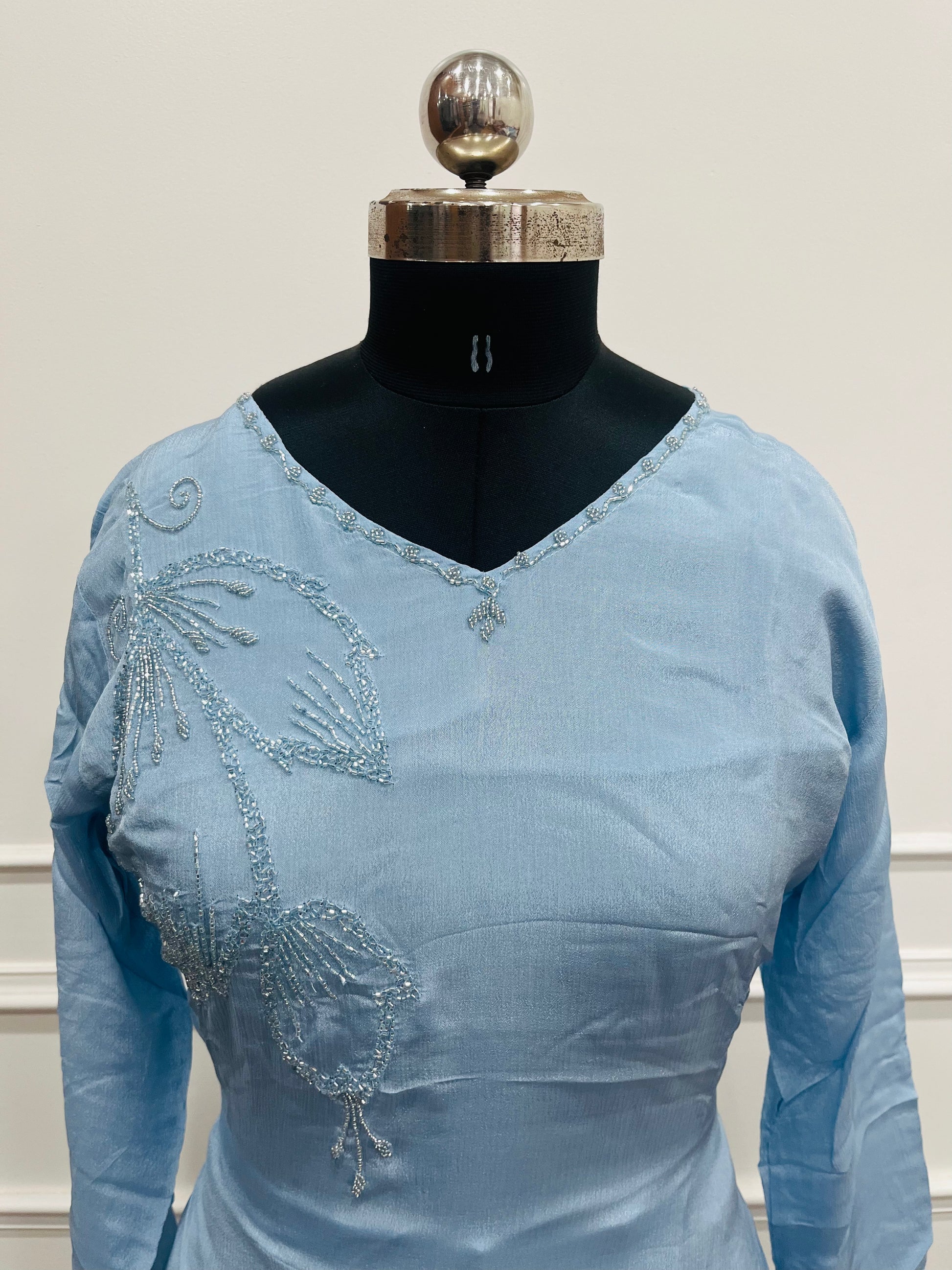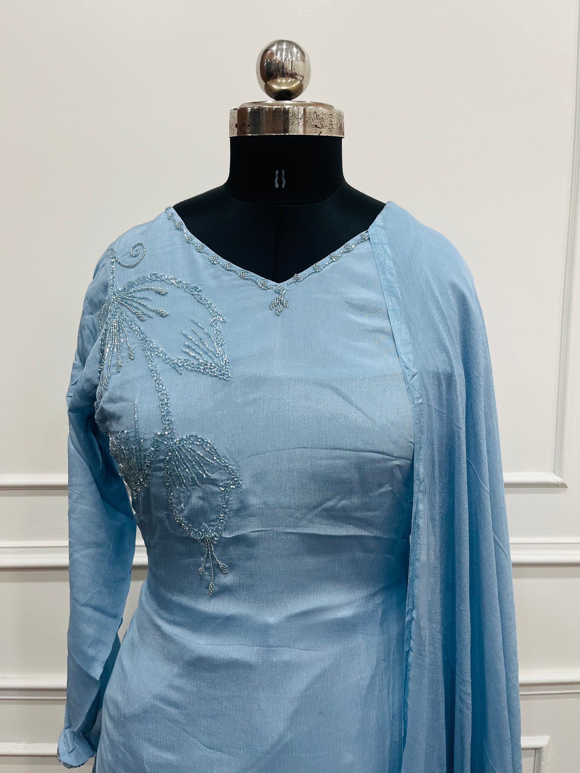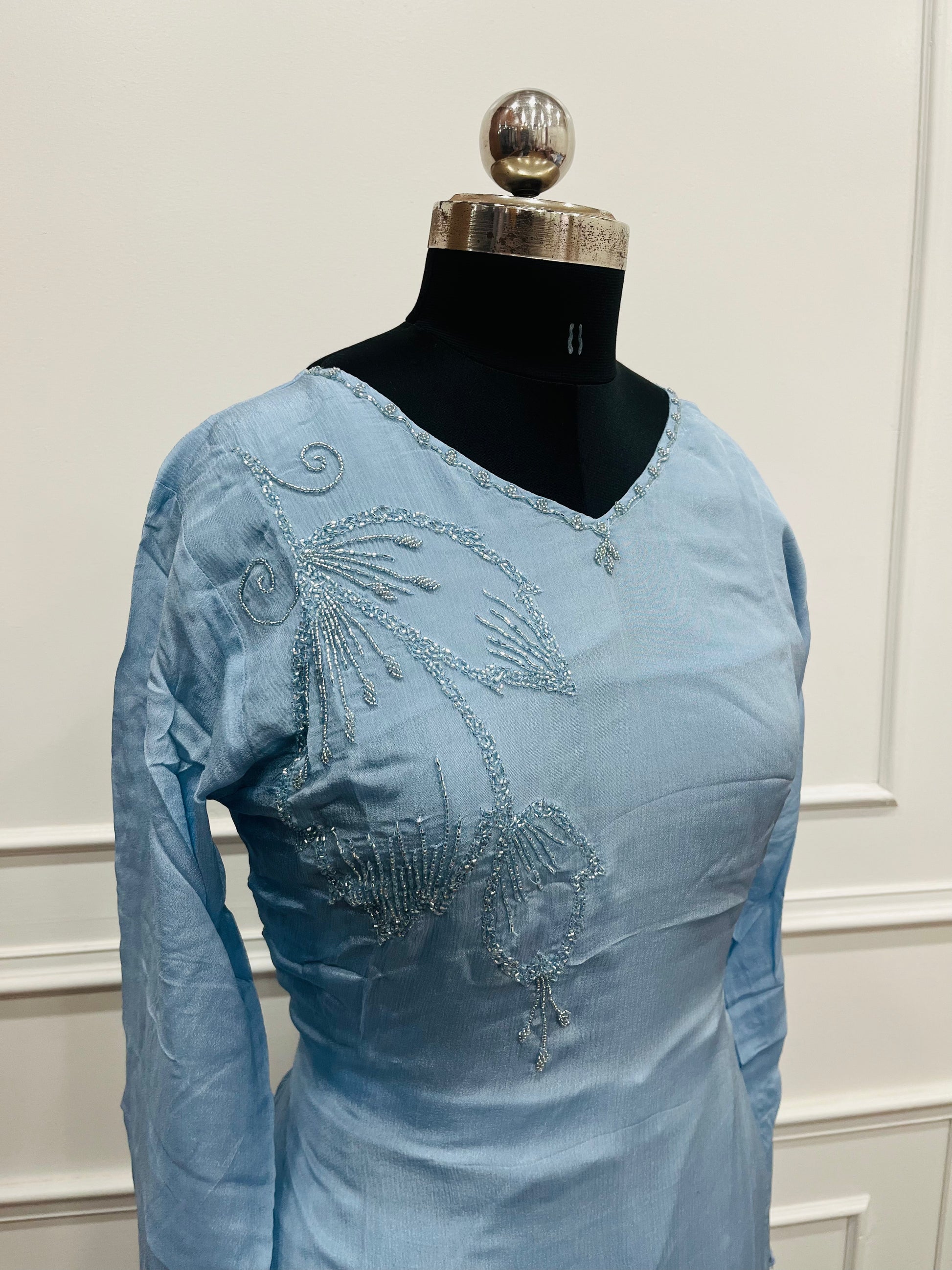 IceBlue Chinon Hand Magam work 3pc kurthi set 295