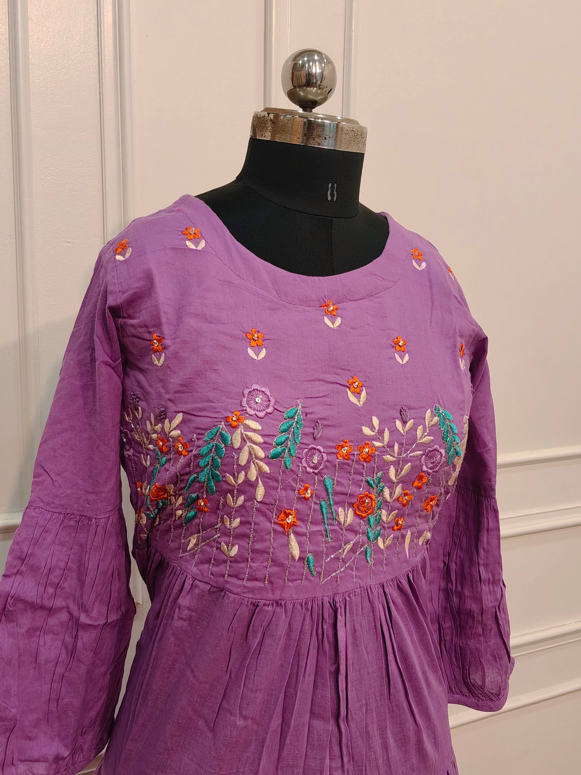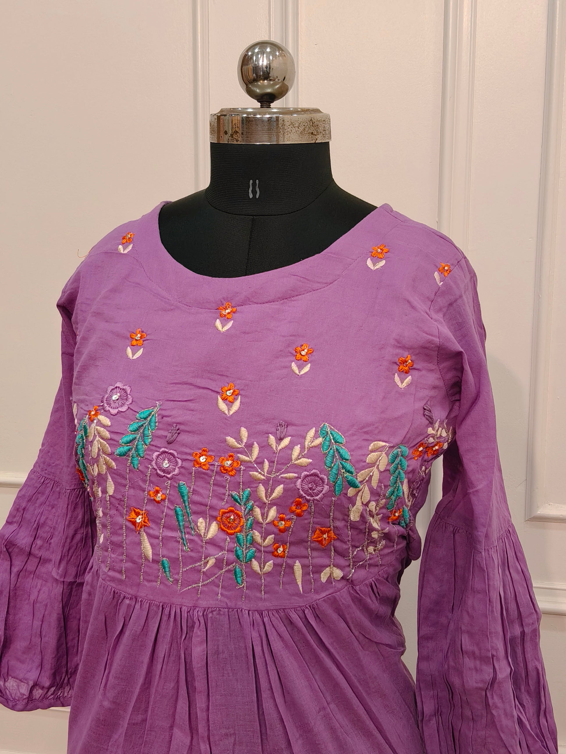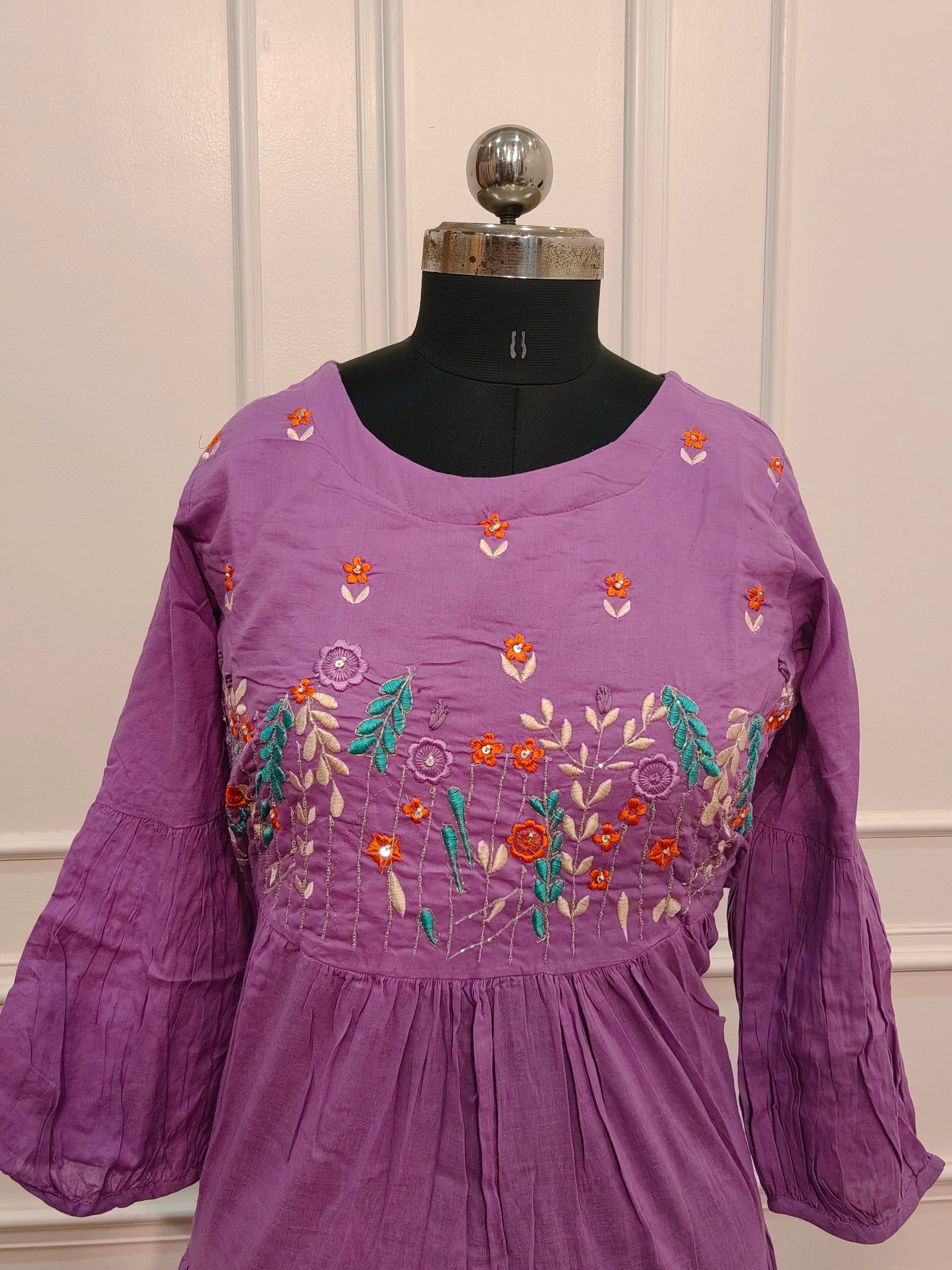 Elegant Orchid Purple Cotton Dress with Embroidery 135