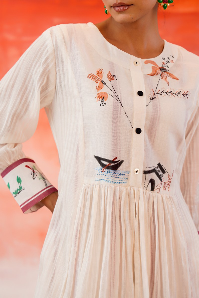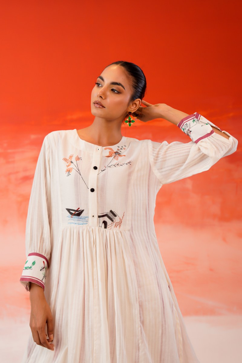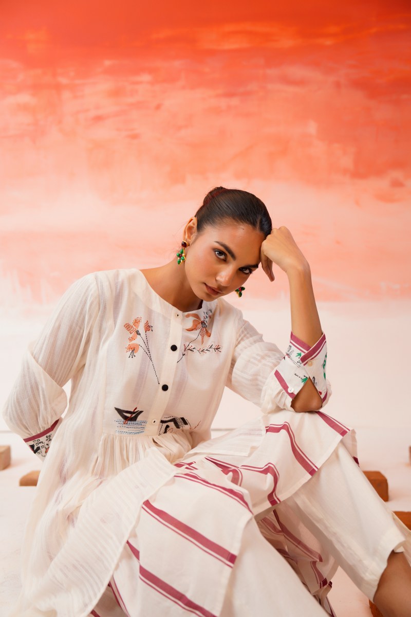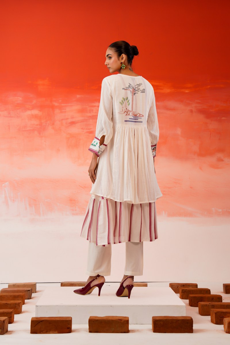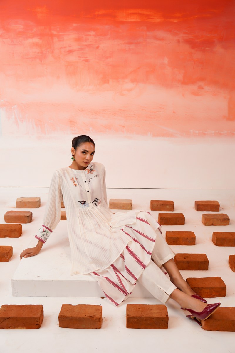 Ivory Elegance Embroidered Tiered Kurta 2pc Set 175