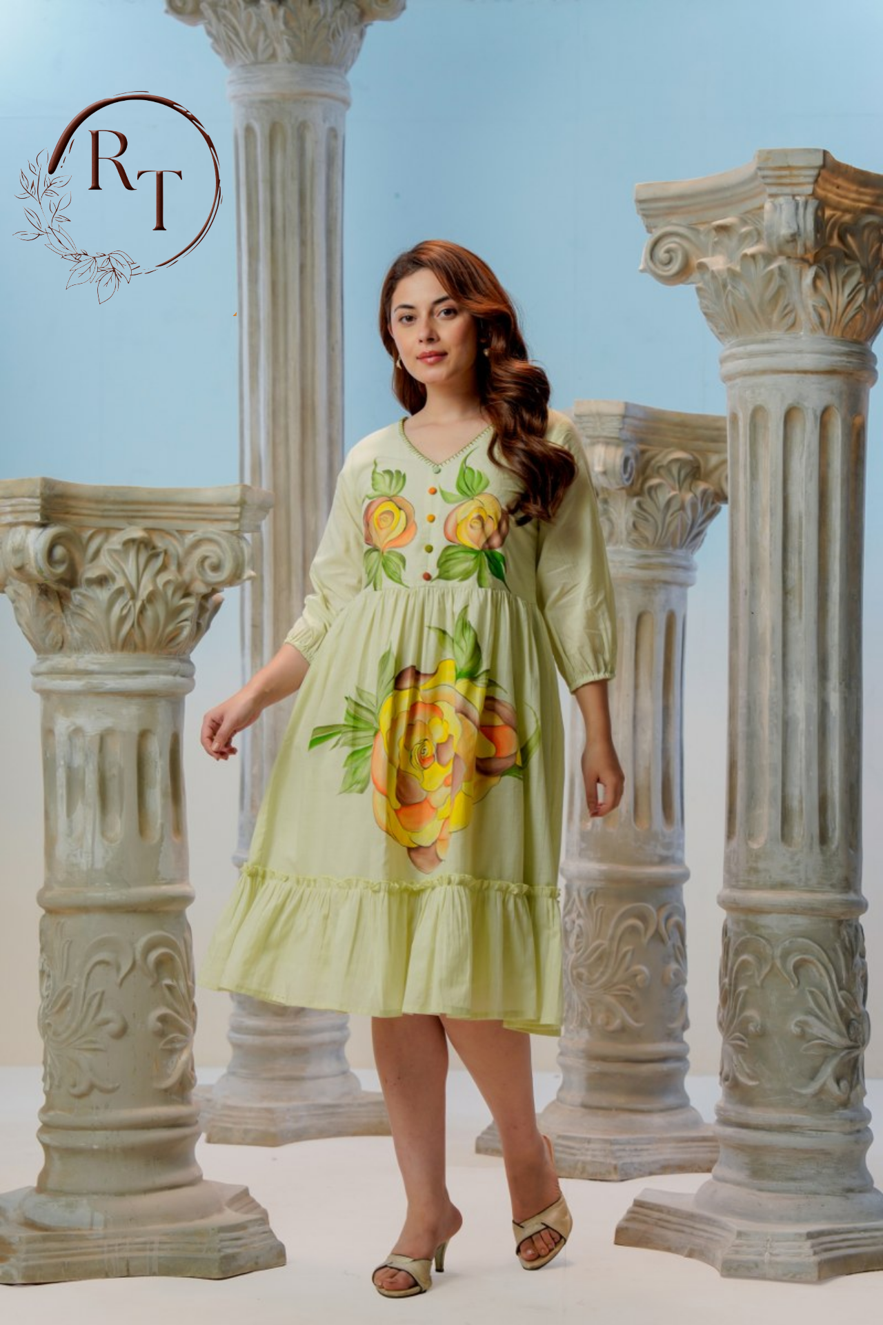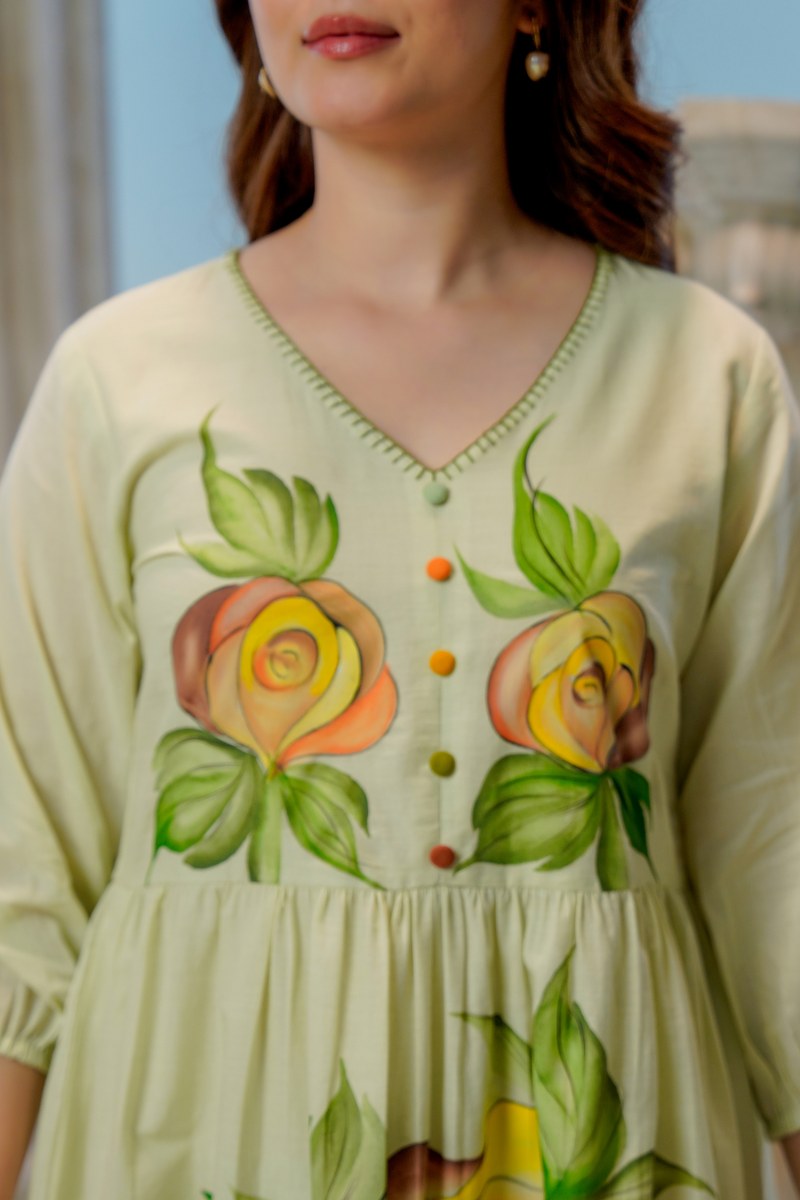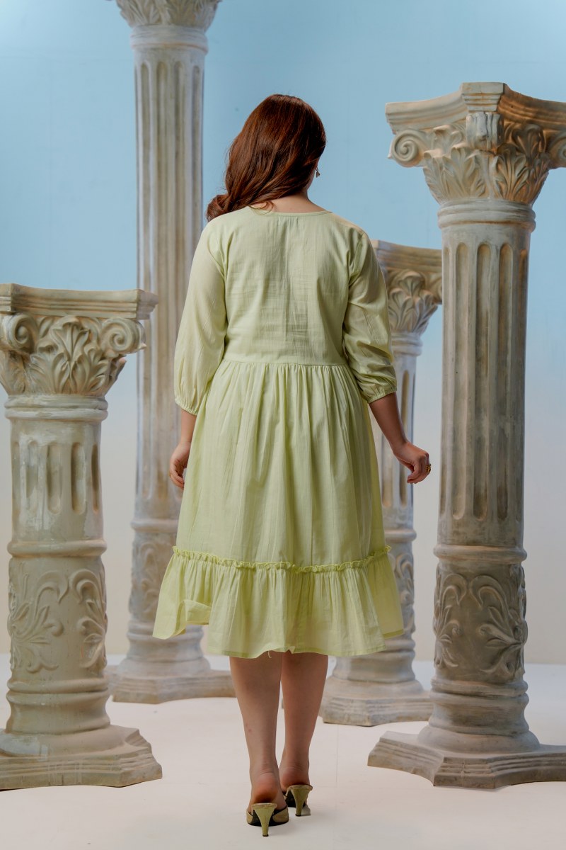 Pastel Green Floral Print Tiered Kurta Dress 135