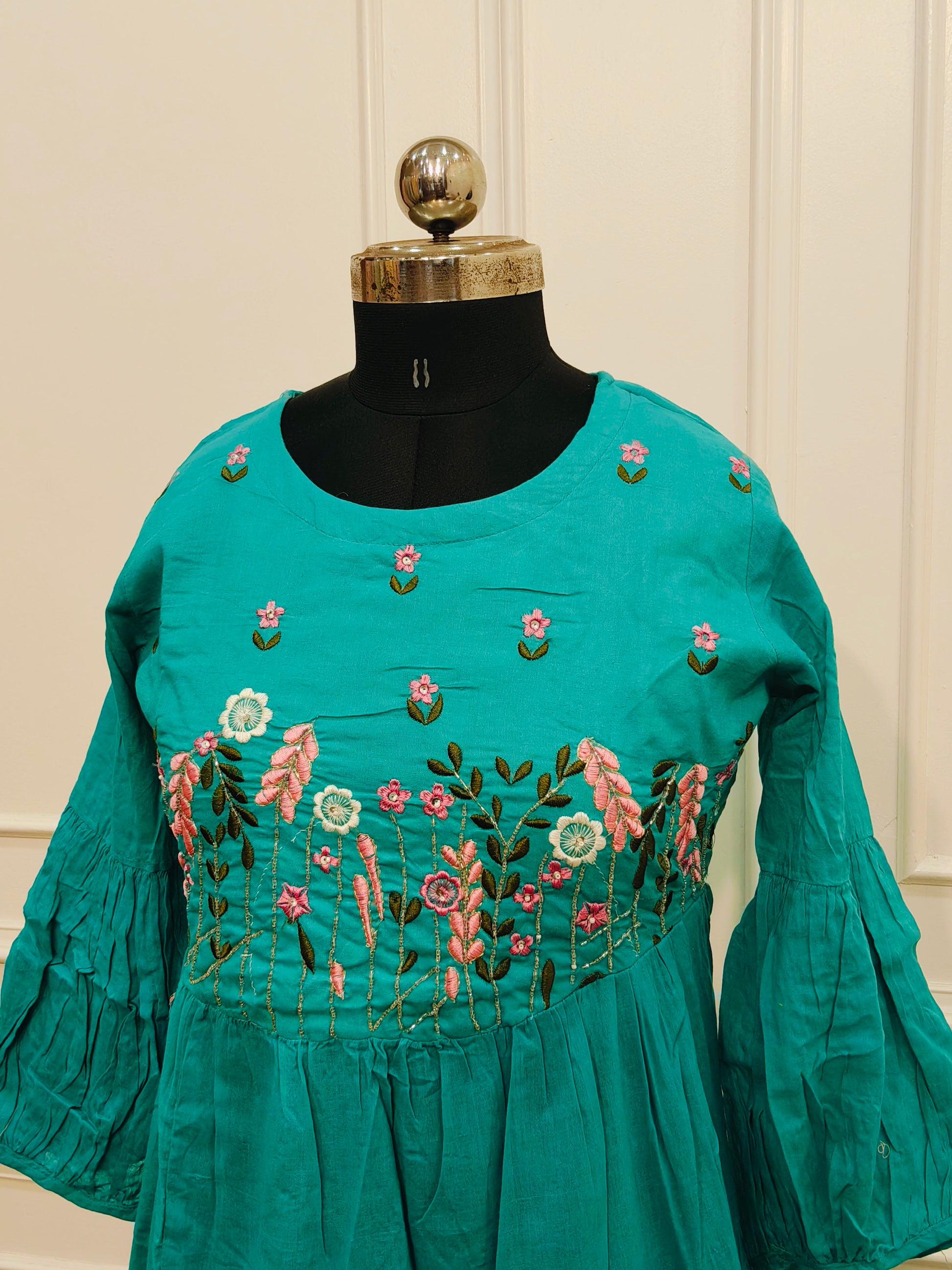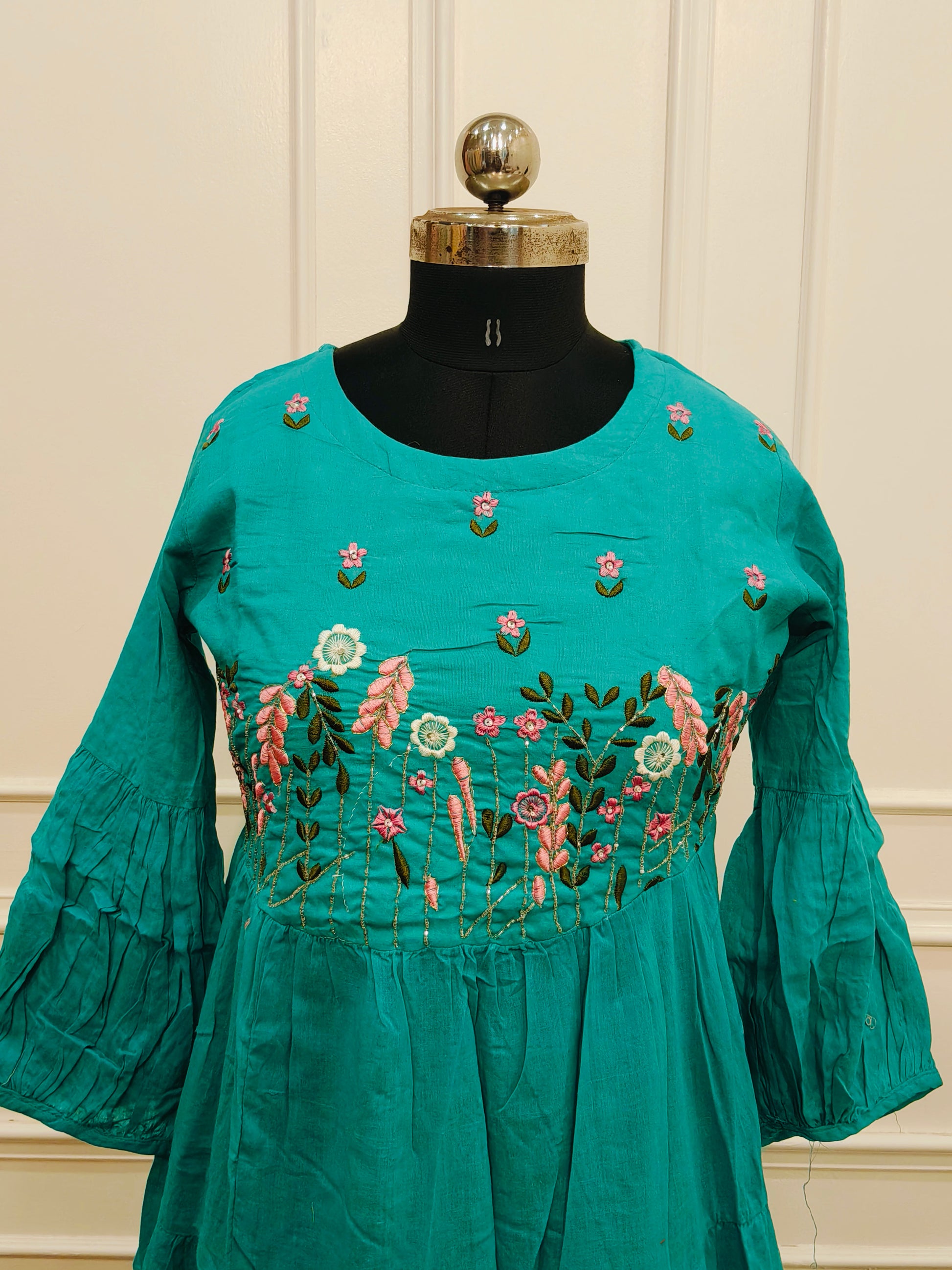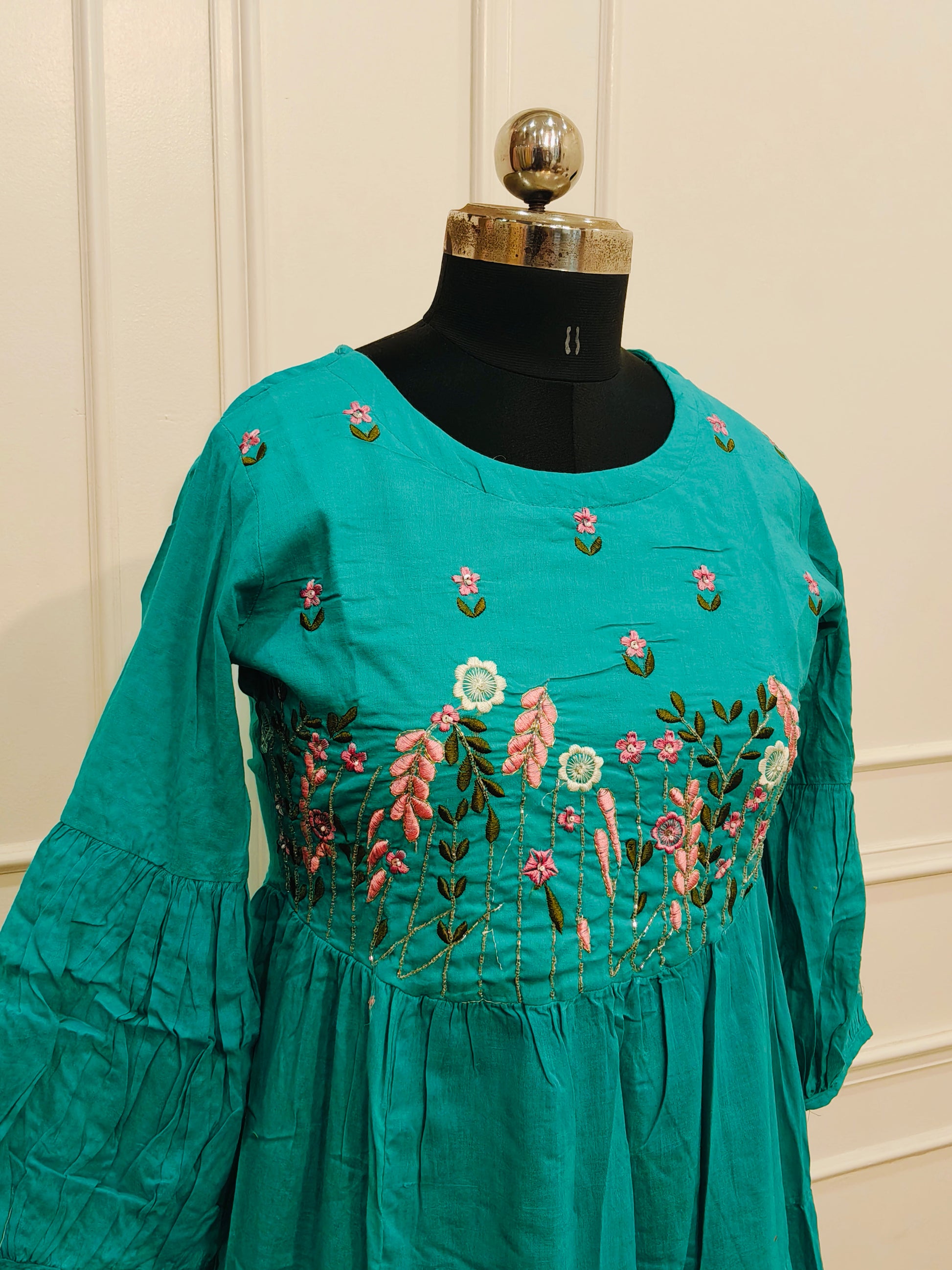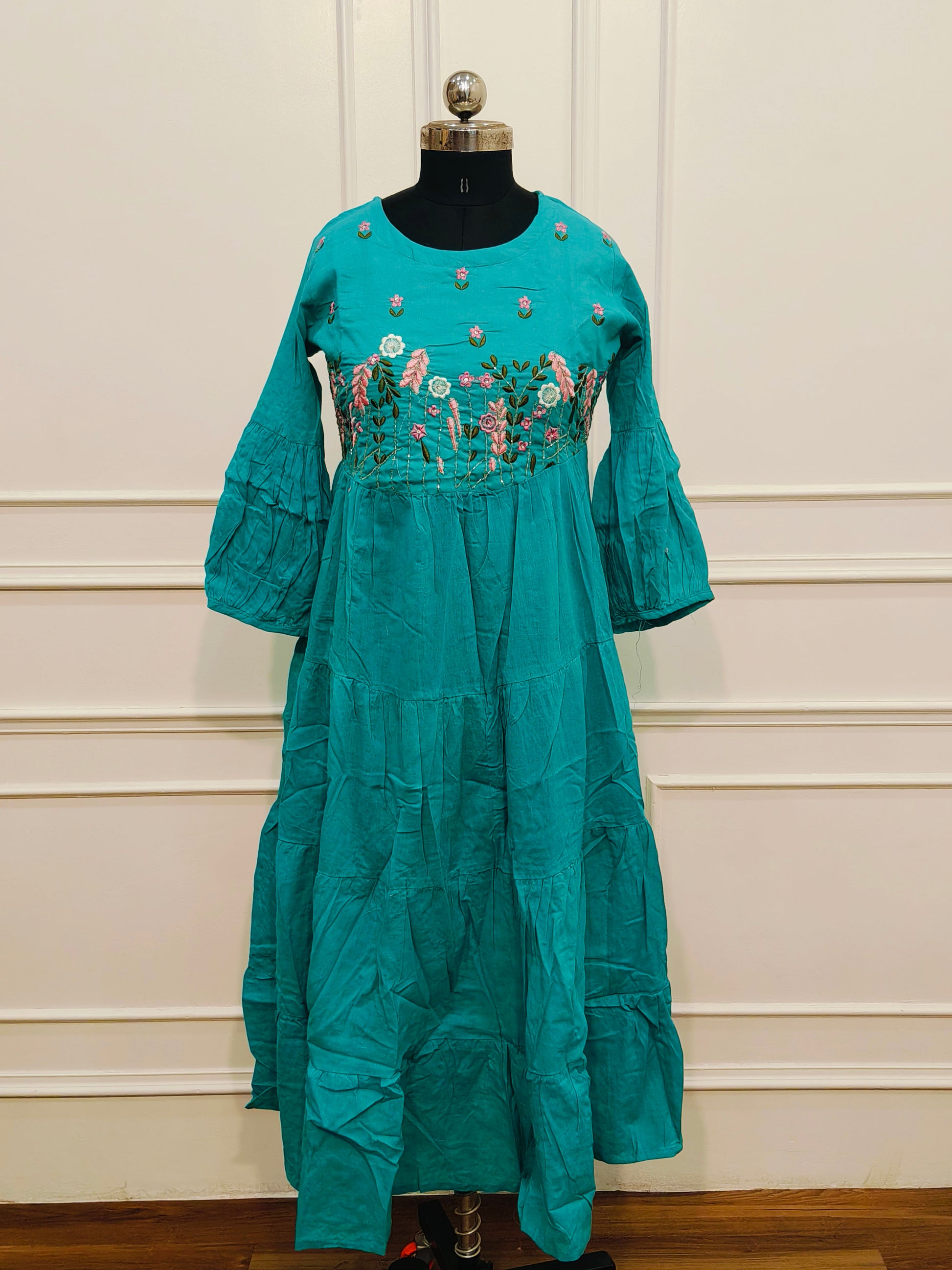 Elegant Teal Blue Cotton Maxi Dress with Embroidery work 135