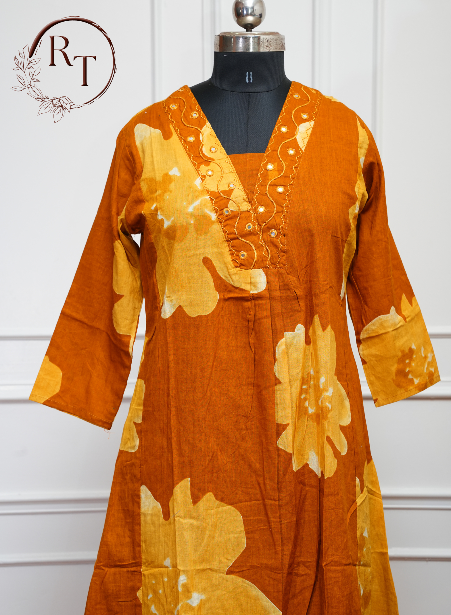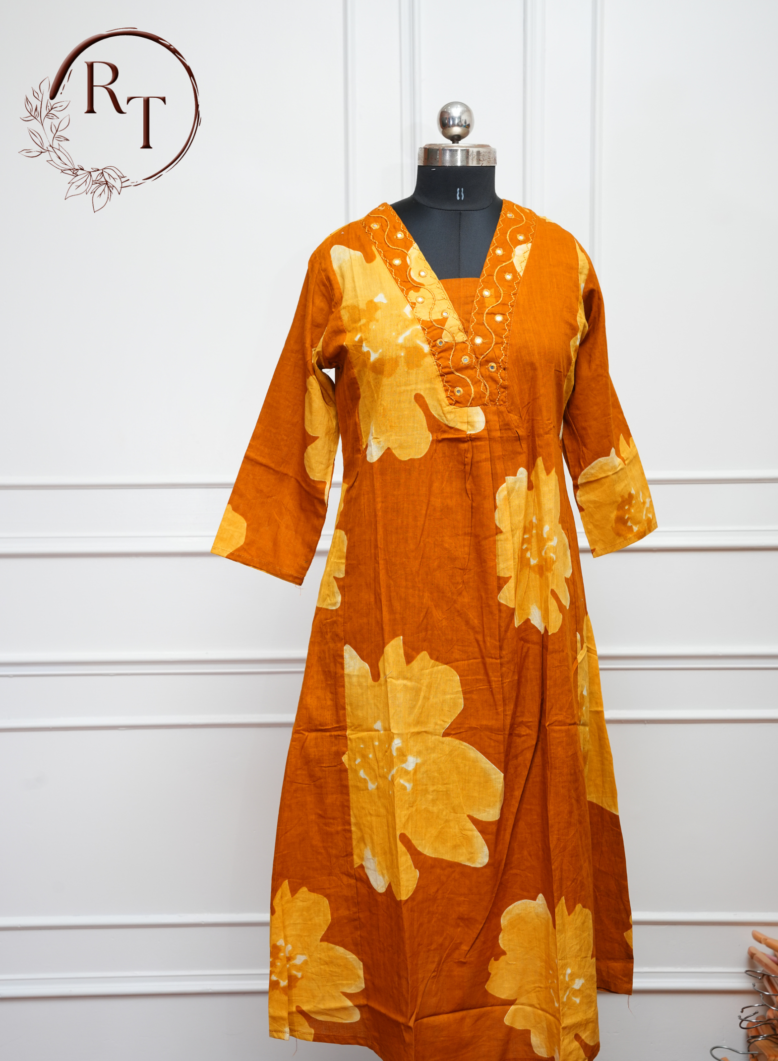 Mull Chanderi Embroidery 3pc Set with Neck Design Floral Motifs – A graceful 3-piece outfit crafted in premium mull chanderi fabric, featuring delicate floral embroidery around the neckline. Available in Pink, Orange, and Green, this set blends elegance with everyday comfort.