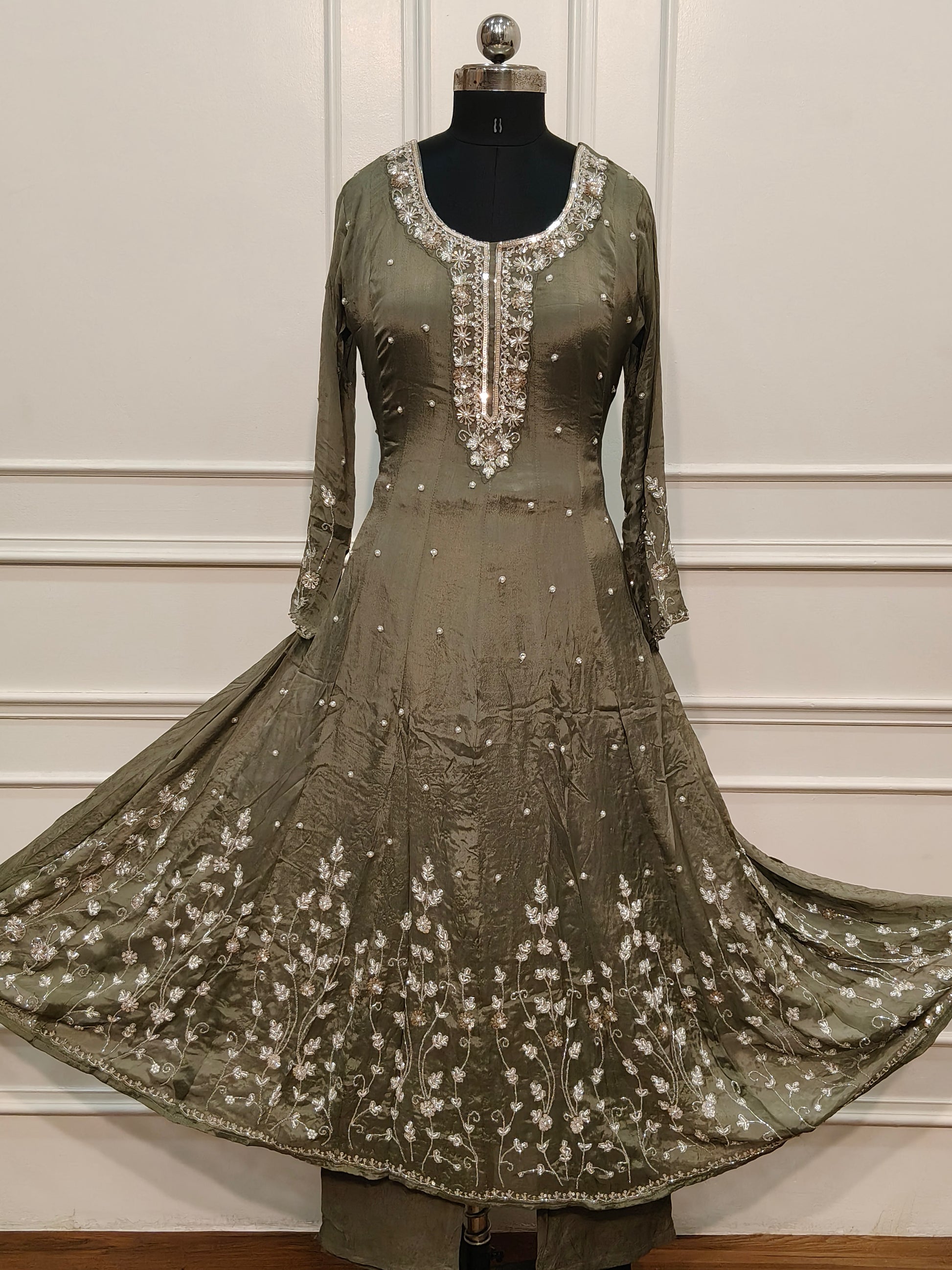Pestal Green Chinon Anarali 3pc set with Hand Mgagam Work 425