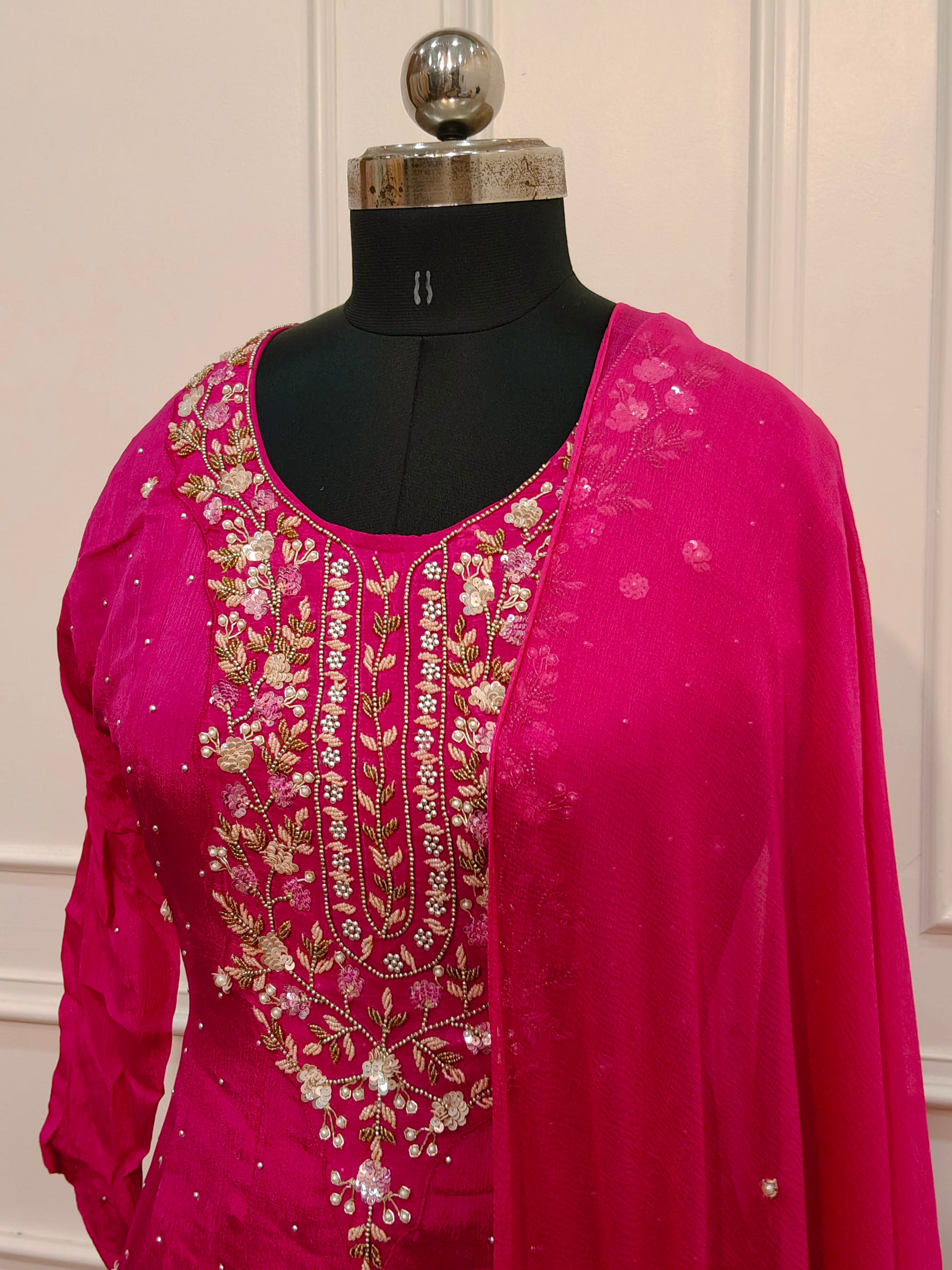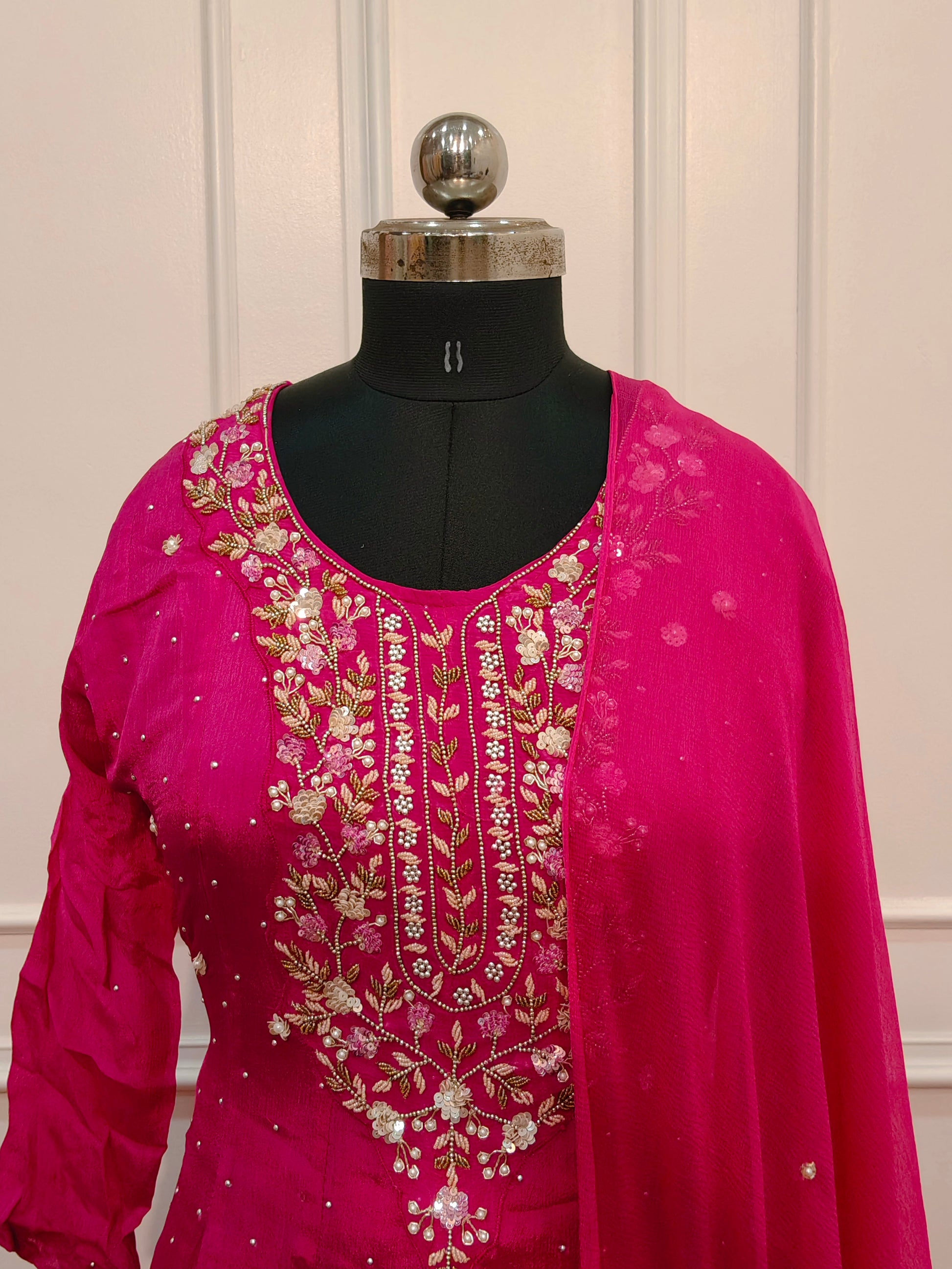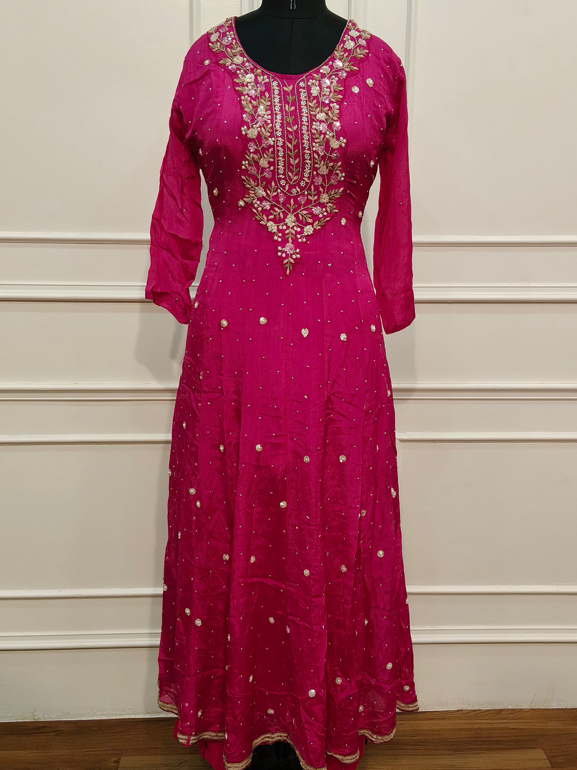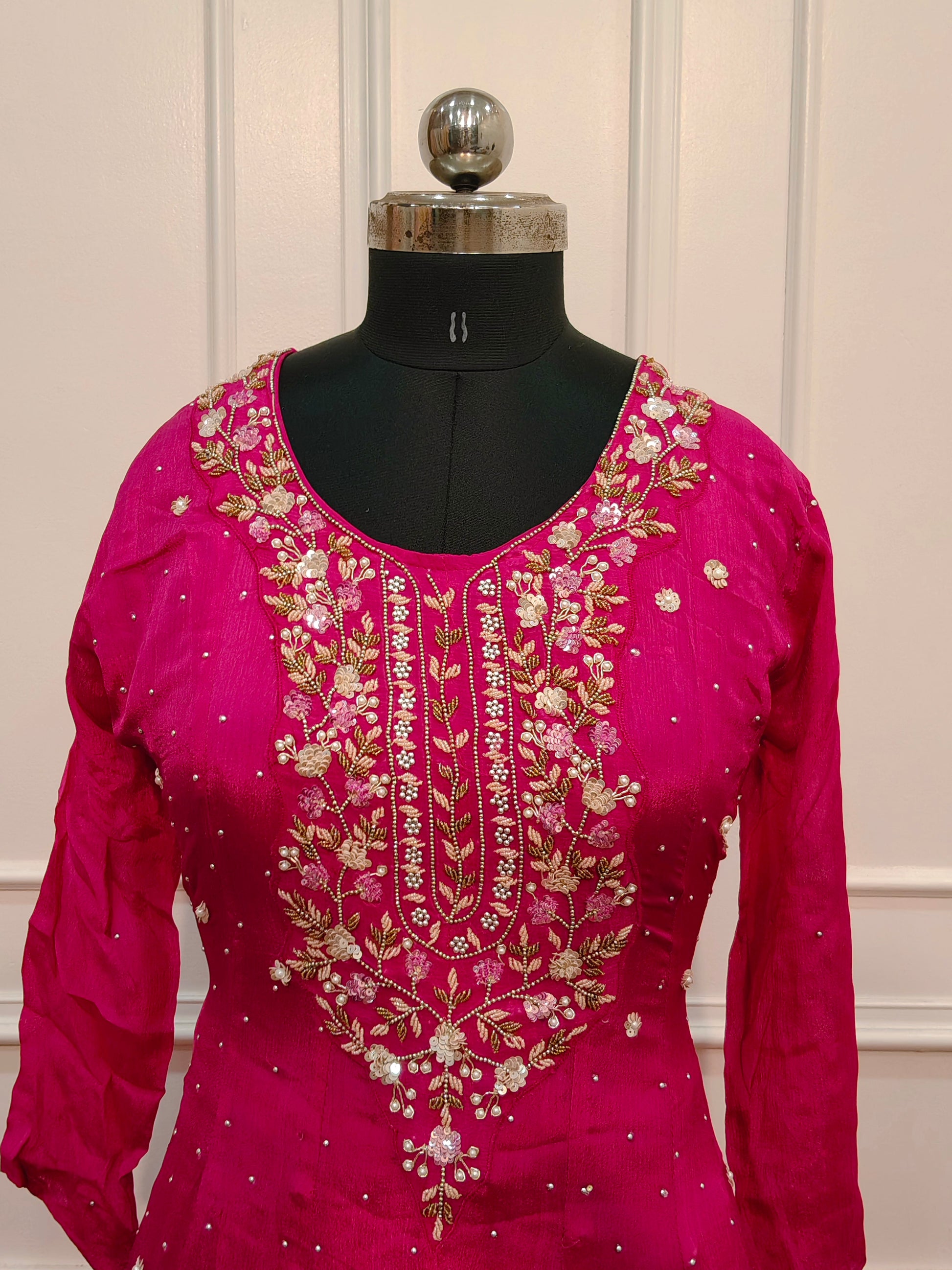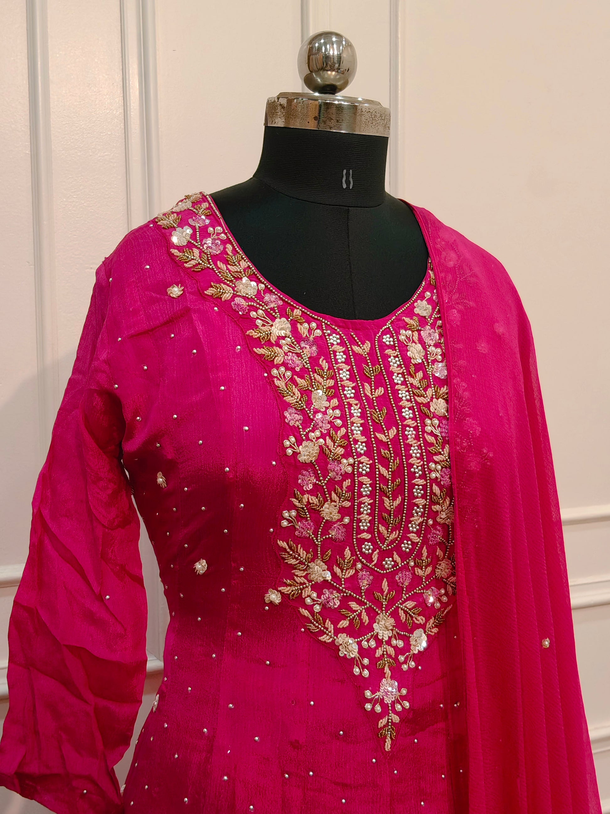 Pink Chinon Hand Magam Work Anarkali 3pc set 385